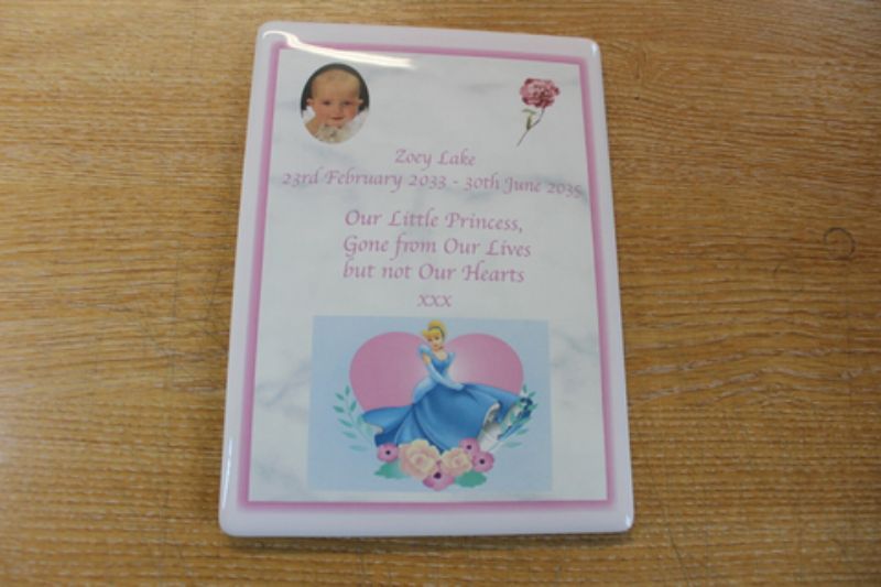 The samples plaques below produced from fine Porcelain. Scratch proof and guaranteed forever from fading.